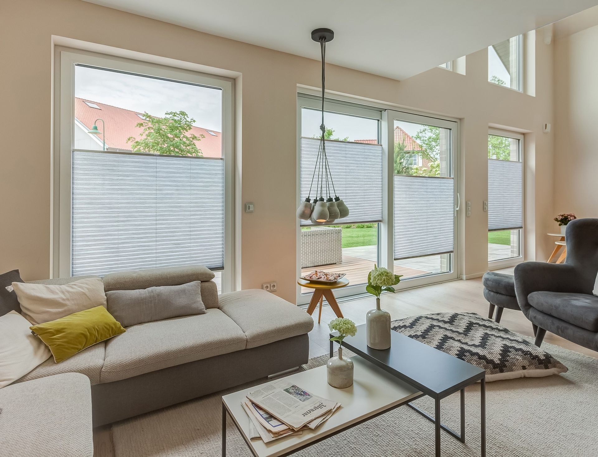 Plissees und Wabenplissees setzen stilvolle Akzente im Raum. Die vielseitige Auswahl an Farben, Mustern und Strukturen sorgt für eine lebendige Raumwirkung. Besonders Wabenplissees begeistern nicht nur durch ihr edles Design, sondern auch durch ihr effizientes Hohlkammerprinzip.